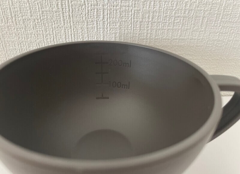 インスタントの粉末スープやお味噌汁など作る時に便利な目盛り付きのマグカップです。