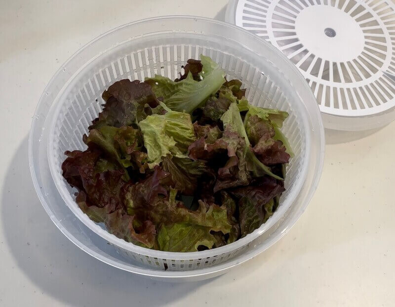 遠心力で余分な水気を簡単に切ることができます。レタスの葉がシャキシャキしています。美味しいサラダを作ることができますよ。