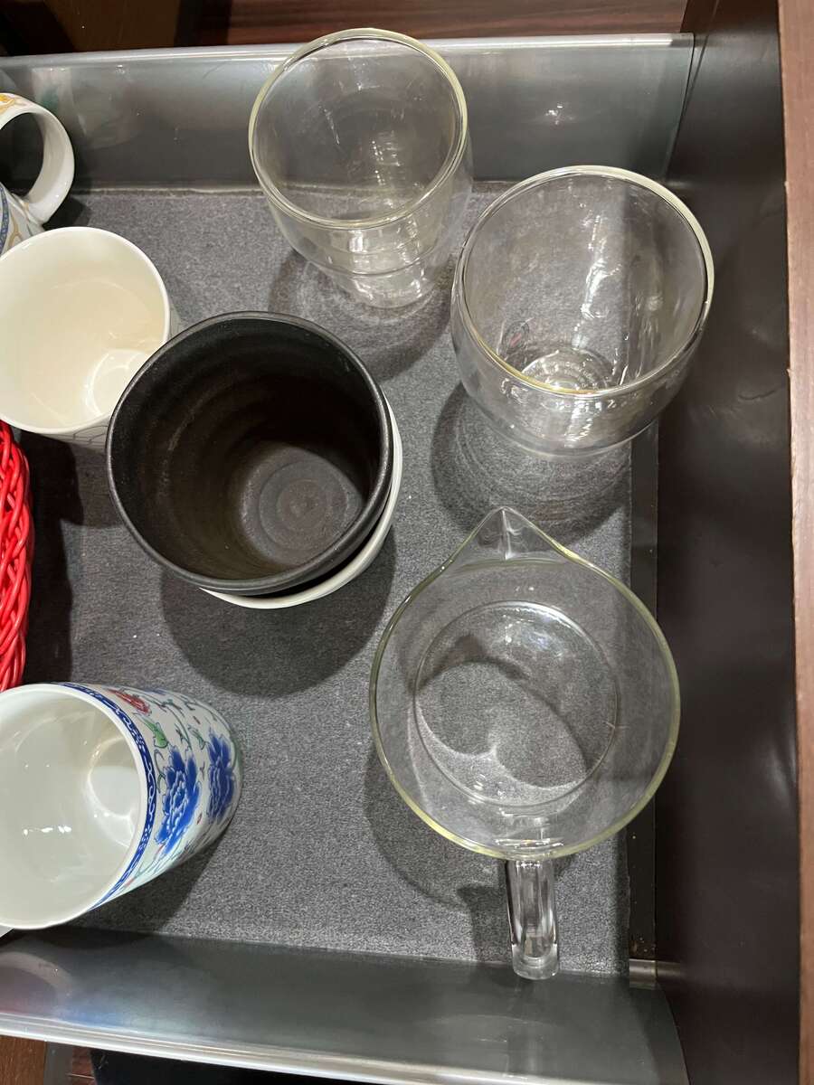 現在はコップ置き場になっている引き出しにドンと置かれているので、やや場所を取っている感じは否めません。