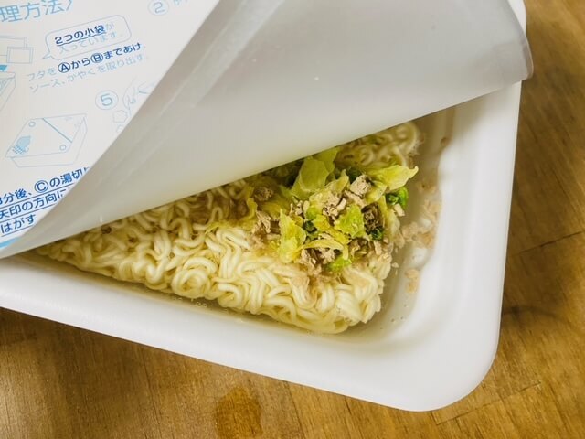 中にはかやくとソースが入っていて、作り方もいたって普通のカップ焼きそば。