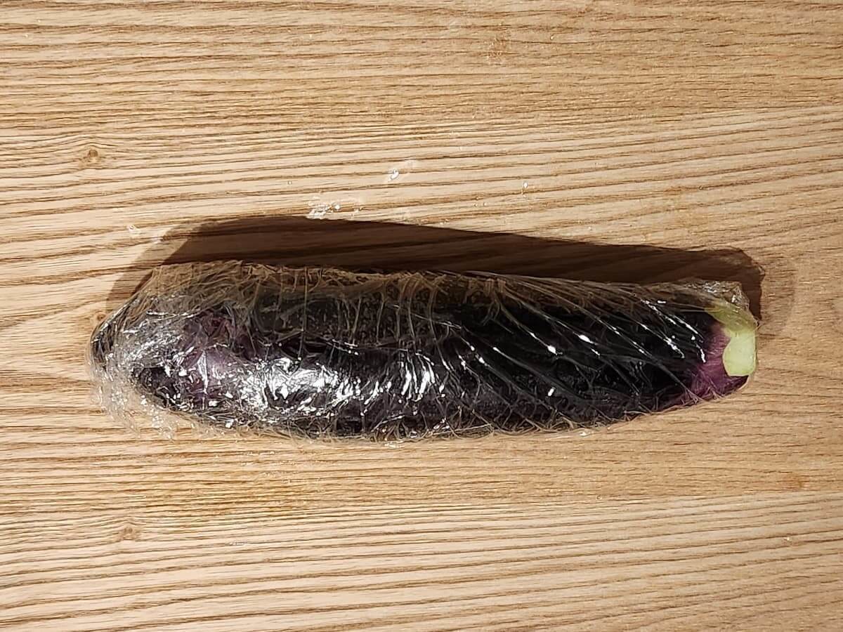 1.なすのヘタを切り落とし、爪楊枝で数カ所穴をあける