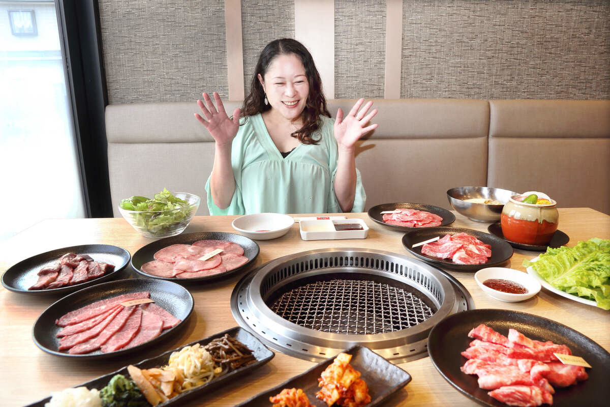「今回召し上がっていただいた国産牛コースは、食べ放題の中でも価格帯が真ん中で、とてもお得なコースとなっています。また、食べ放題ご希望でない方には大満足ペアセット6,556円(税込)がおすすめ。大人2名で召し上がっていただくのにちょうどいい量で、食べごたえ満点です。