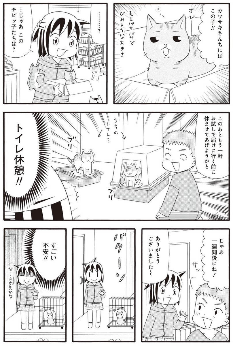 ※このコミックは書籍『猫が4匹いる暮らし~今日も大騒ぎな猫たちに届け!飼い主の想い~』(著者:カワサキカオリ)の内容を一部掲載しています。