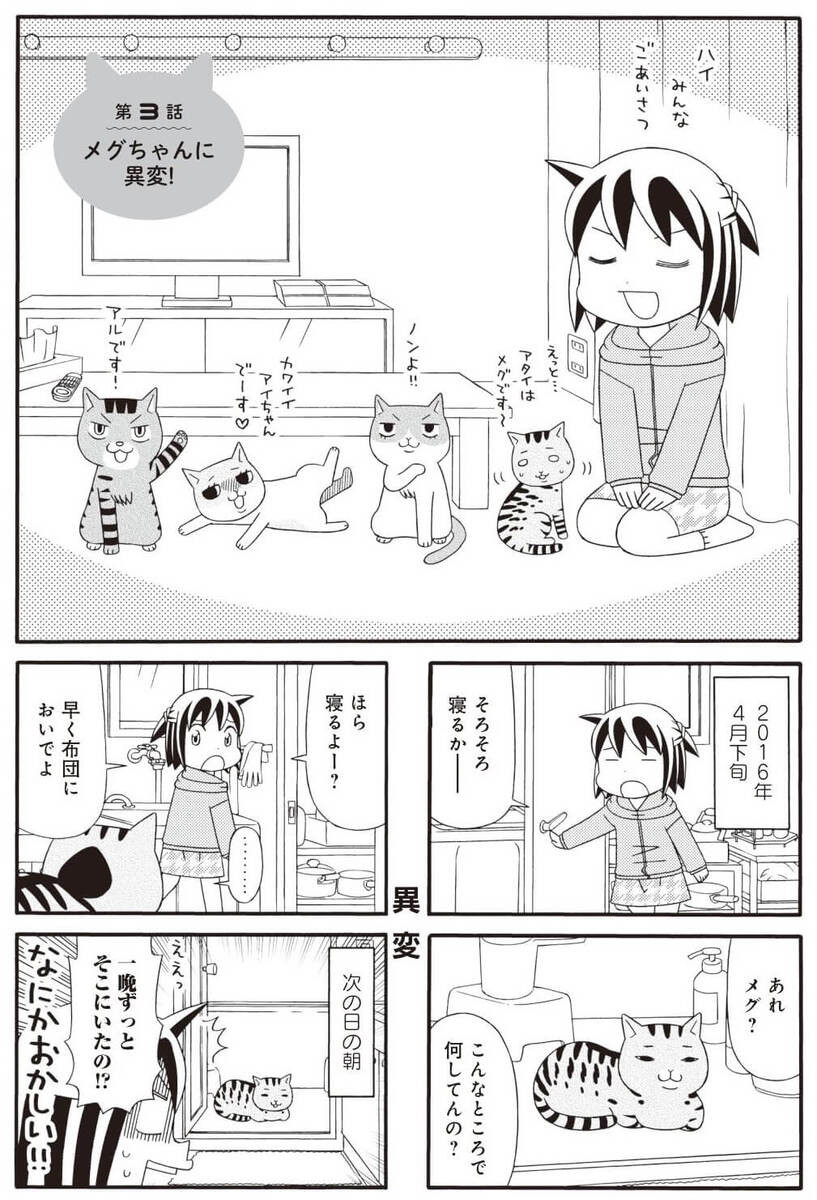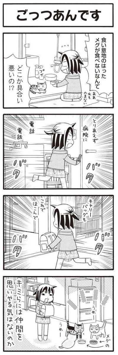 ※このコミックは書籍『猫が4匹いる暮らし~今日も大騒ぎな猫たちに届け!飼い主の想い~』(著者:カワサキカオリ)の内容を一部掲載しています。