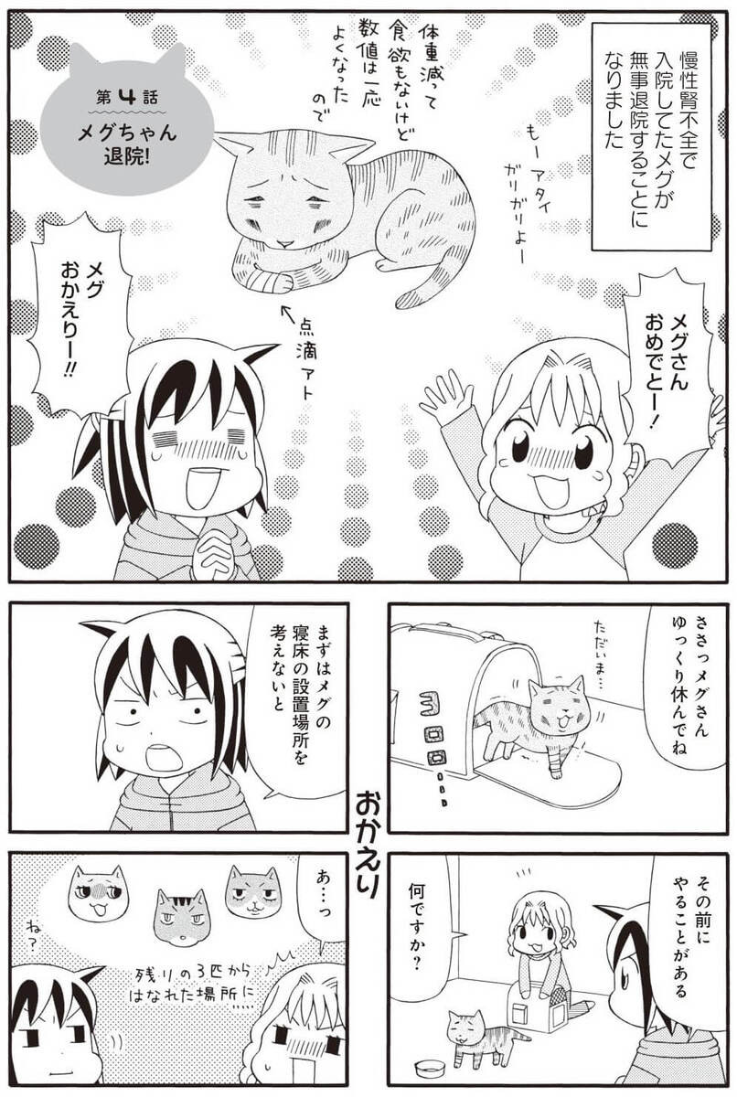 ※このコミックは書籍『猫が4匹いる暮らし~今日も大騒ぎな猫たちに届け!飼い主の想い~』(著者:カワサキカオリ)の内容を一部掲載しています。