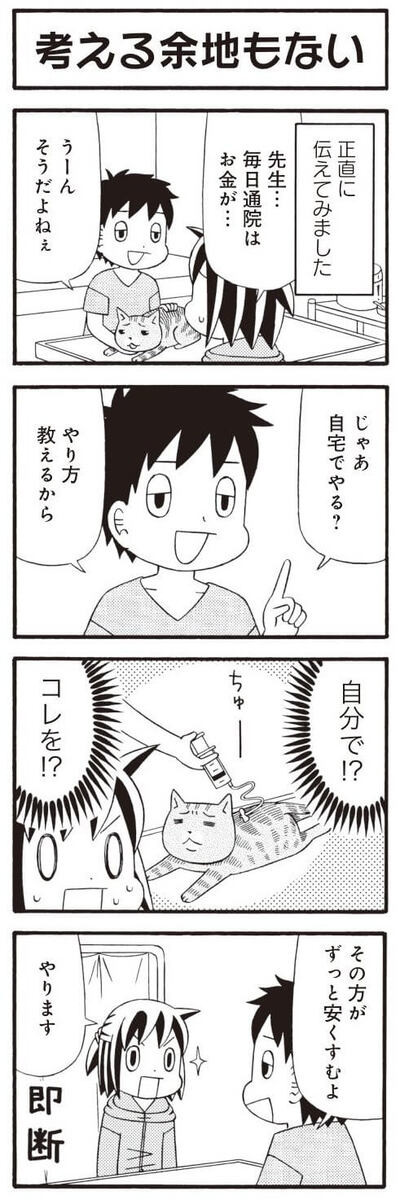 【漫画】お金・時間・ケンカ…退院しても問題は山積み(泣)!自宅で点滴にチャレンジするも…【猫が4匹いる暮らし④】