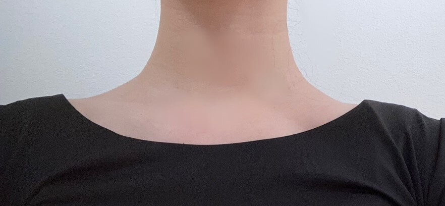 これは良い点でもあるのですが、デコルテ&背中が大きく開いたデザインになっていること。筆者のようにデコルテ~胸元の貧相さにコンプレックスを持っている方は、トップスとして着用するに工夫が必要そうです。