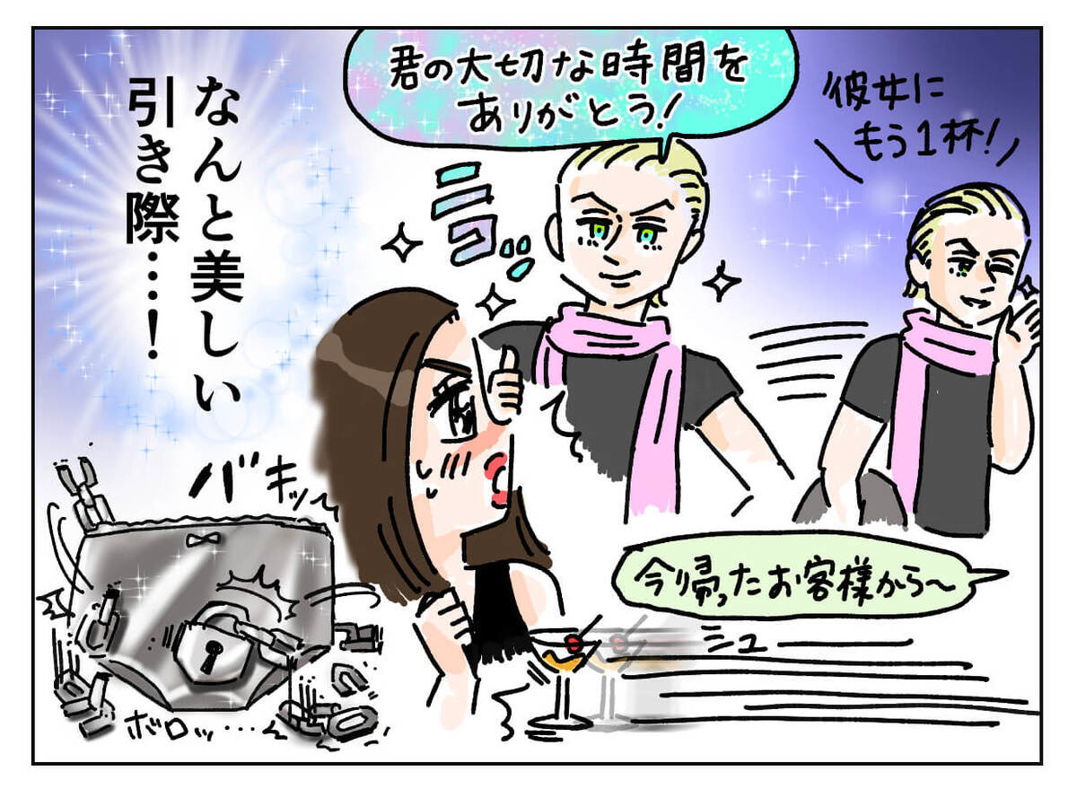 彼は優しく微笑み、その場を去って行った。 近くのウエイターさんに「彼女に好きな飲み物をもう一杯。」と声をかけて。