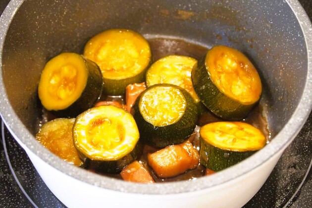 完成したズッキーニとベーコンの煮つけがこちら!早速いただきましょう。