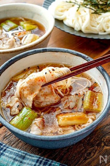 パパッと簡単に作れてご馳走感のある「豚バラ南蛮つけそうめん」。豚肉とネギをこんがり焼くことで、素材の旨味をしっかり引き出すのがポイント。そうめんレシピのレパートリーにとってもおすすめな一品です。