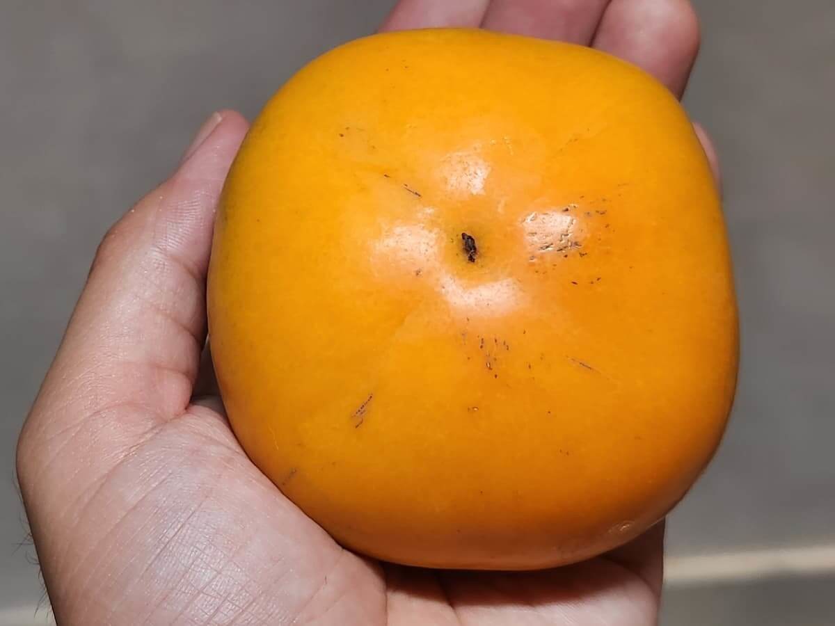ずっしり重い柿の方が、水分量が多くジューシーです。また、これは農家さんから教えていただいた選び方ですが、同品種であれば、柿はなるべく大きいものを選びましょう。