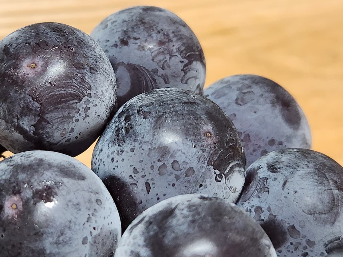 ブルームは鮮度が良いぶどうの証なので、しっかりブルームがついている個体を見かけたら「心の中でガッツポーズ」をしてカゴの中に入れましょう。