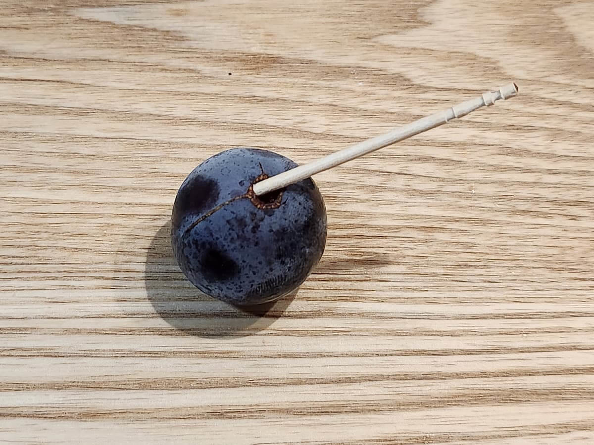 ②枝から外したときにできた穴に爪楊枝を差し込む