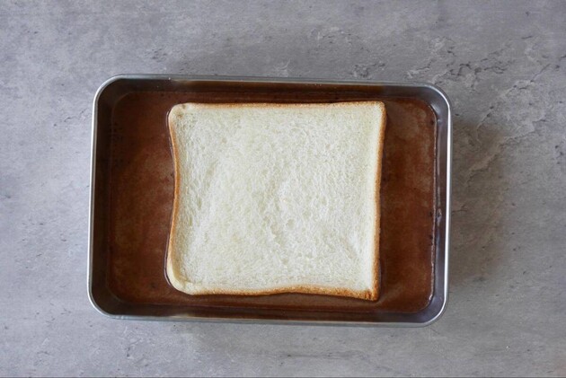 ②①に食パンを浸します。ボウルでは食パン全体が浸からないので、バットを使うのがおすすめです。