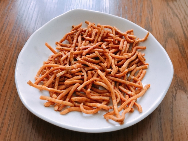 酸味の効いた甘めの味付けで、子どもから大人まで間違いなく好きな味です!その中にベビースターが加わり、食感のアクセント。