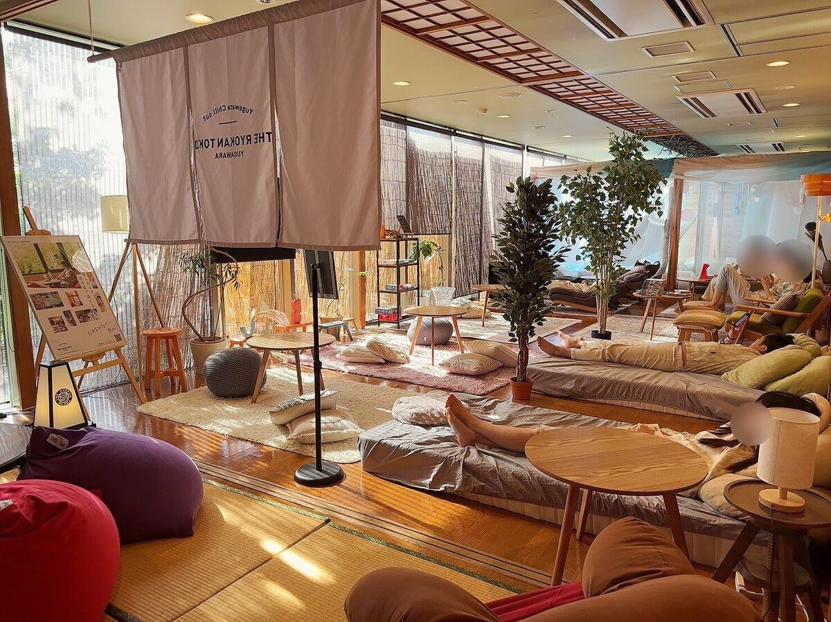 イメージ的には、お風呂があったり食事ができたりするスーパー銭湯なのですが……驚くほどオシャレと話題なんです!季節によって変わるエントランス、おしゃれすぎるカフェ、マッサージ、サウナ、漫画読み放題に宿泊することまでできます。