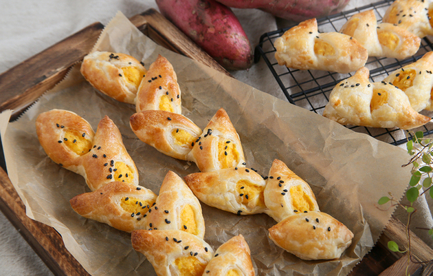ちぎって食べよ♪パイシートで作るサクッホクッがおいしい「くねくねおいもパイ」
