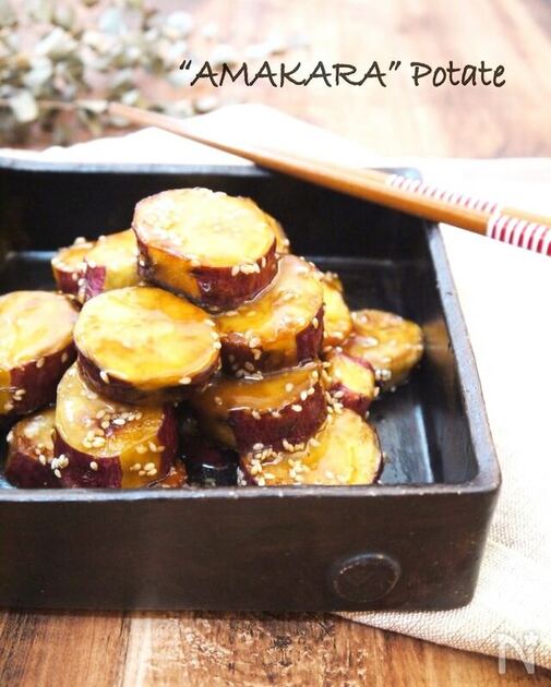 大人も子供もやみつきになる旨さの甘辛おつまみ。レンチンさつまいもに片栗粉をまぶしてカリカリに焼き、甘辛だれをとろりと煮絡めれば出来上がり。お好みで炒りごまを振ってお召上がりください。