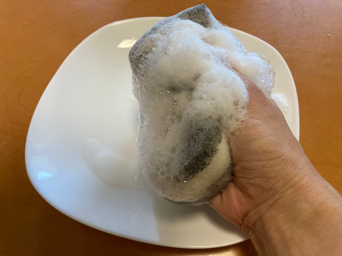 「泡立つスポンジ」という名前の通り、しっかりとした泡立ちで、食器も調理器具もスイスイ洗えます。