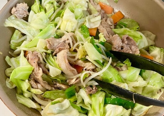 お肉と野菜がまんべんなく混ざったら、「志麻さんの肉野菜炒め」の完成です。
