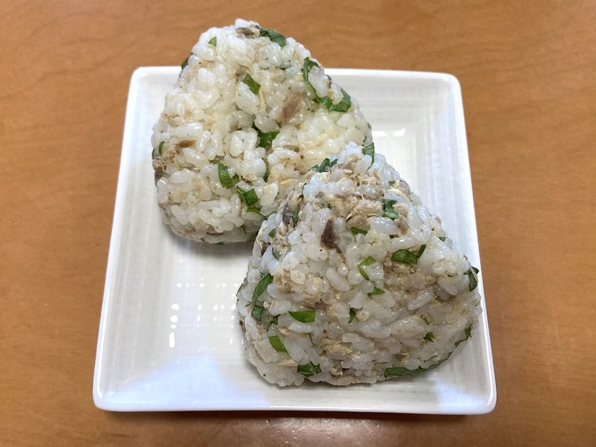 このおにぎりは、我が家の定番です。焼きサバと、大葉&ゴマをご飯に混ぜるだけ!