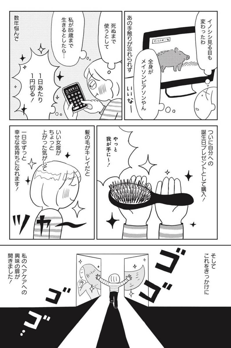 【漫画】にににに、2万円のヘアブラシ〜!?友人「とかしただけで髪がシルクになったんよ」【めんどくさがりやの自分の機嫌を取る暮らし③】