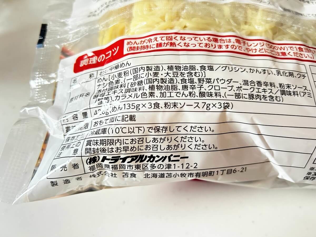 こちらの製造元も、焼きそばと同じ福岡県のトライアルカンパニーと記載がありました。