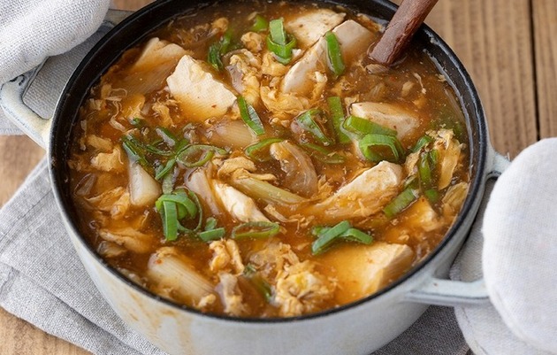 体の芯から温めてくれるピリ辛豆腐とネギ玉スープ。きっとやみつきになること間違いなし! ぜひお試しください。