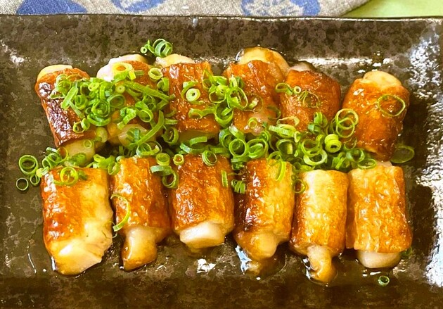 一つひとつ餅を詰めたちくわ。並んでいる様子が可愛らしく、手間をかけた分、情が湧いてしまいますね。