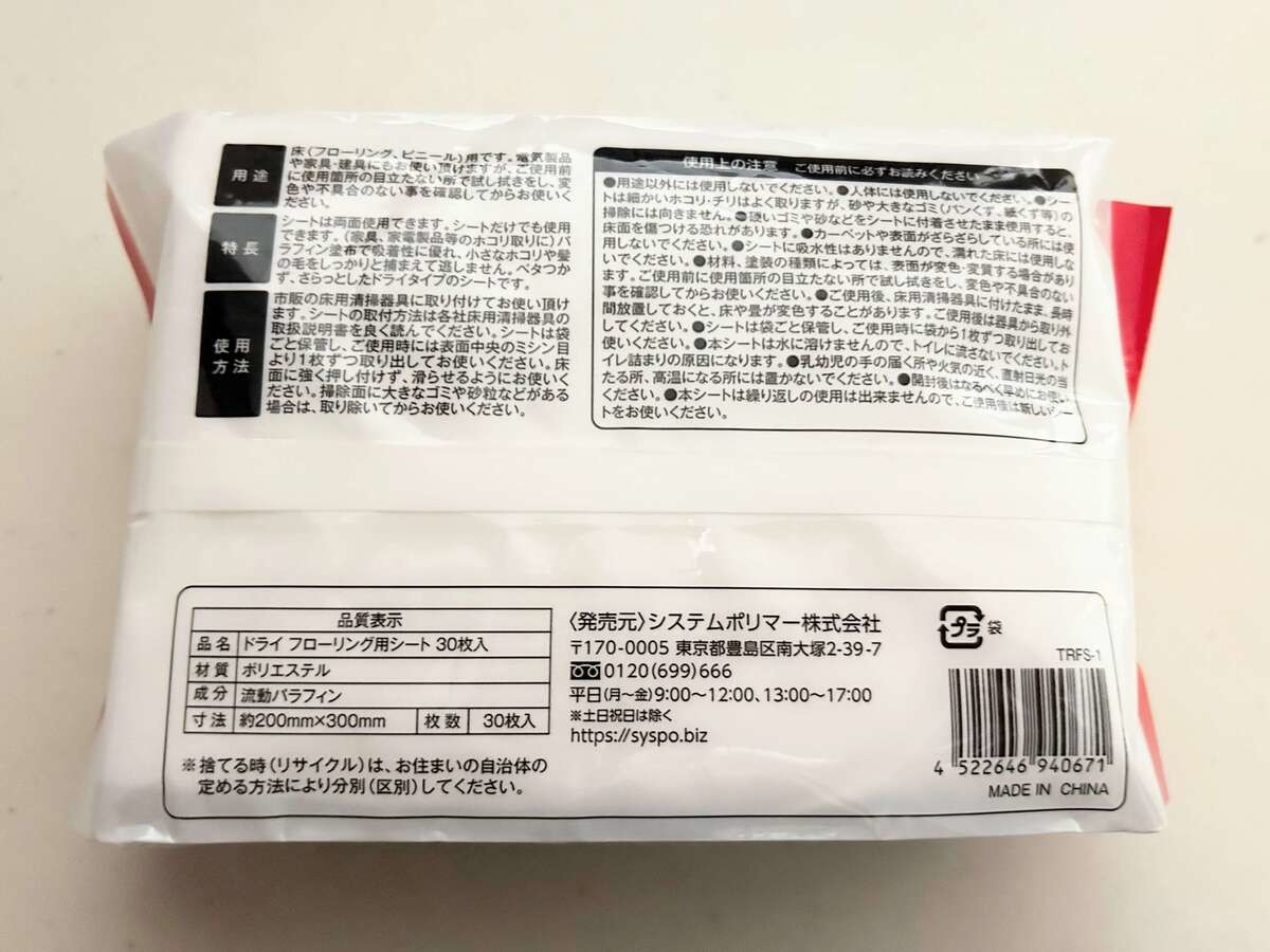 シートは床(フローリング・ビニール)専用ですが、家具・家電のホコリや汚れ取りにも使えます。その際は、目立たないところで変色しないか確認してから使用するようにとの注意書きがありました。