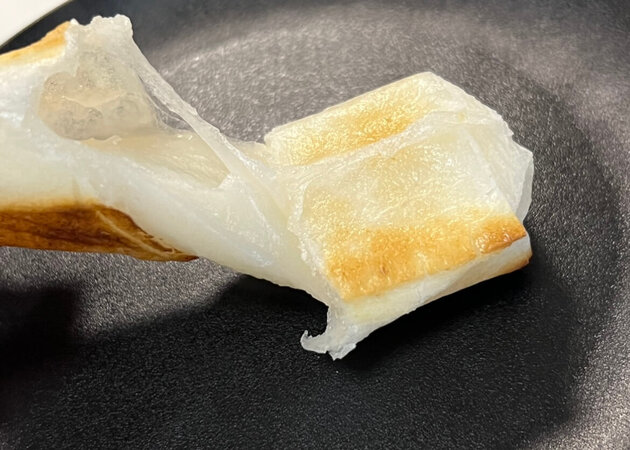 表面のパリッとした焼き加減もあまりなく、全体的にやわらかさがあまりないおもちになってしまいました(泣)。