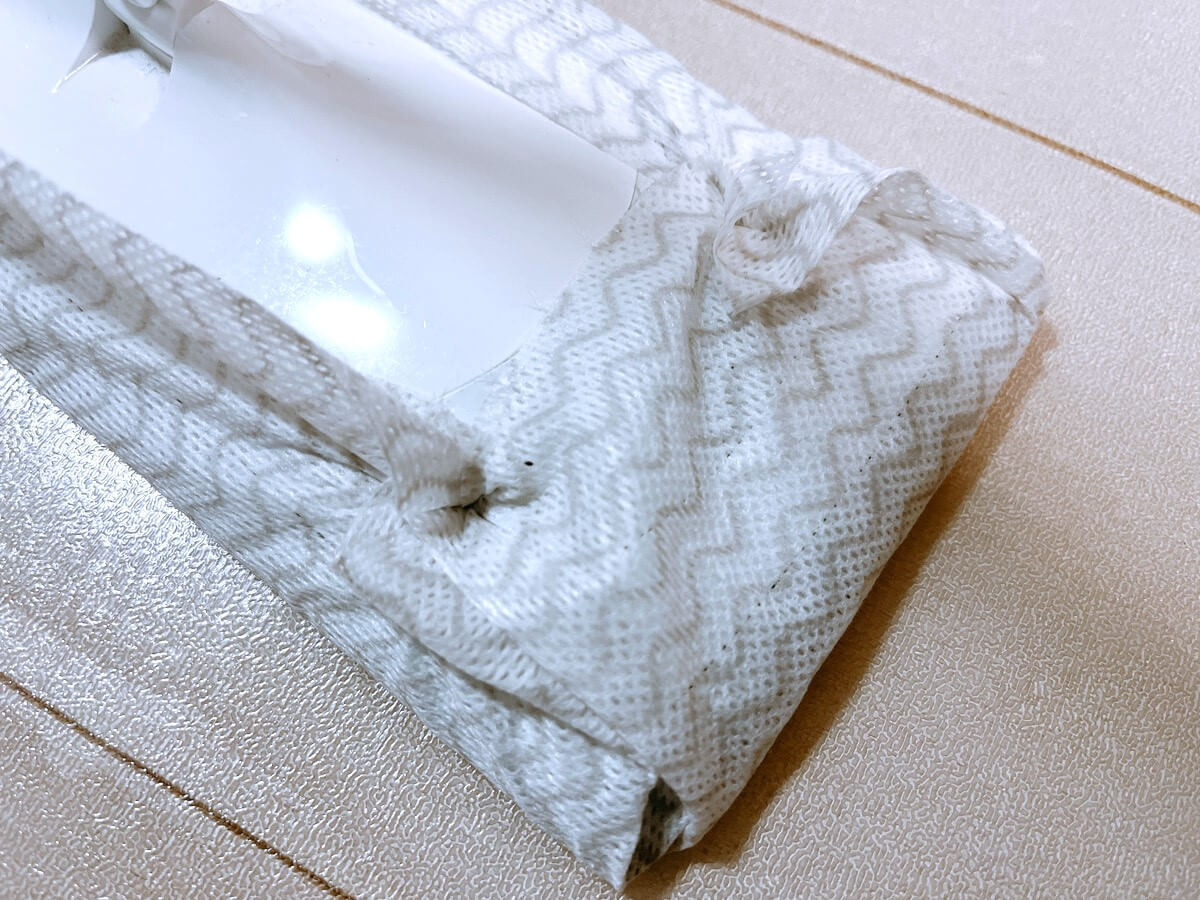 私はニトリで売っている「カット式台ふきん(税込 199円)」をクロス代わりに使いますが、家になければ使い古したふきんや布、使い捨てフロアワイパー用シートでも代用できます。