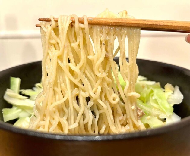 茹で上がったら網でキャベツをすくい、残ったお湯で麺を袋の表示どおりの分数で茹でますよ。