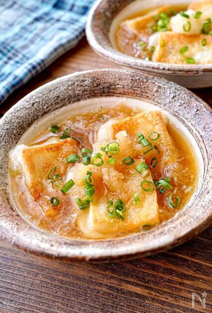 こんがり揚げ焼きにしたお餅にじゅわっとつゆが相性抜群!大根おろしもプラスして、さっぱりながらも奥深い味わいに。10分ほどで作れるお手軽さも嬉しいポイントです。