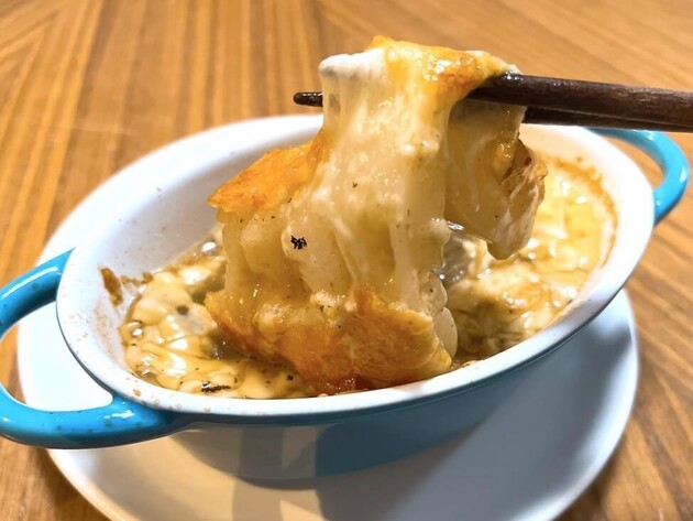 こんがり焦げたチーズと、ふわふわのお餅。オニオングラタンスープってパンの印象が強いのですが、お餅ともこんなに相性が良いんだ!ってことに驚かされました。