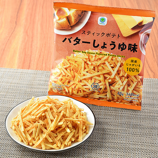 国産じゃがいも100%使用。じゃがいもの風味を生かすバター醤油の味付けで、手がとまらなくなる細切りタイプ。