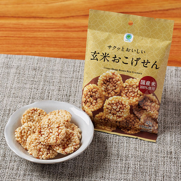 丸粒のお米を使用したおこげならではのサクサク食感と醤油の香ばしさがやみつきになります。玄米が入っているのも何だか嬉しい。