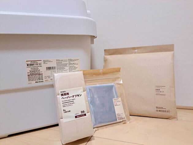 汚物袋と凝固剤、処理袋が入っています。念のために購入していましたがこちらは今後個数を増やす予定です。