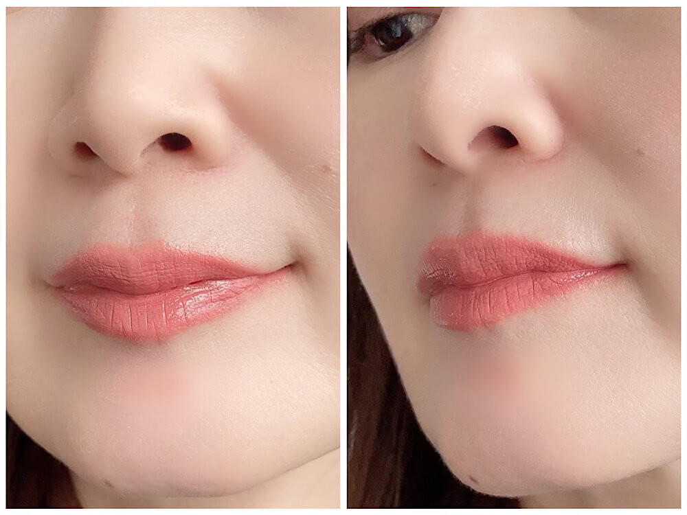 保湿性も十分で、事前にリップクリームを塗っていなくてもこのツヤです。
