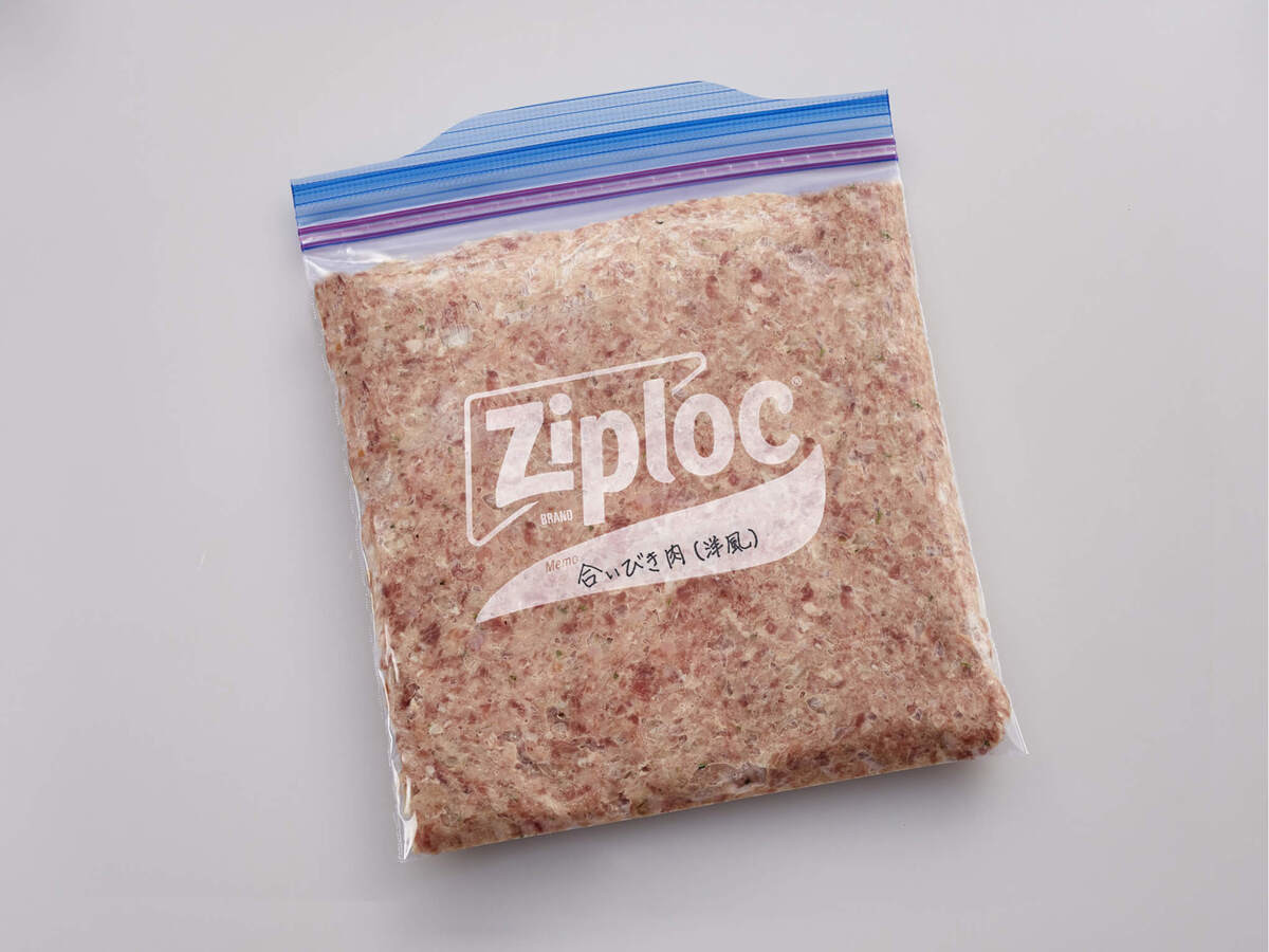 冷凍のポイントは、とにかく空気を抜くこと!「ジップロック®フリーザーバッグ」に入れて空気をしっかりと押し出してから口を閉じ、薄く平らにして冷凍しましょう。