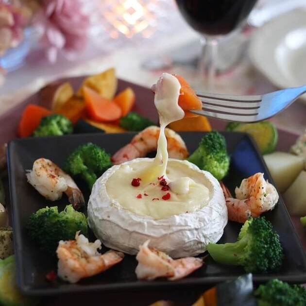 チーズを使った料理の中でも、特に人気のチーズフォンデュ。セットを持っていなくても、カマンベールチーズをレンジでチンするだけで、気軽にお家でも楽しめますよ。
