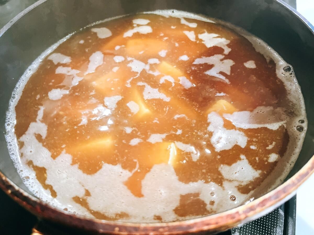 焼き芋と豆腐は、あらかじめ切っておきましょう。