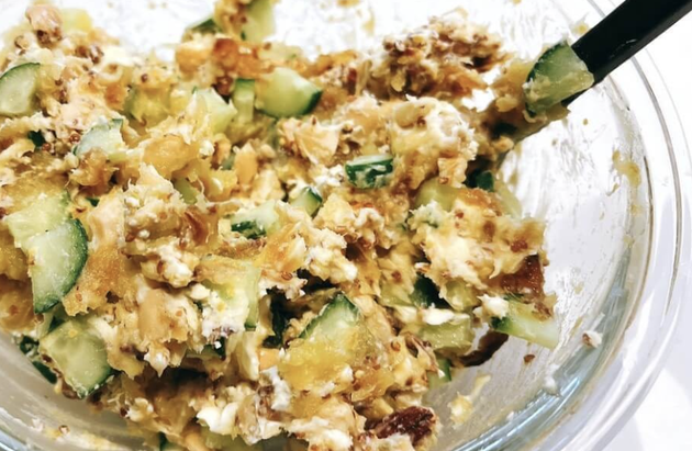 ボウルでしっかり混ぜて、「ただただ、これを盛りつけるだけさ」とお皿に移したらもう完成!