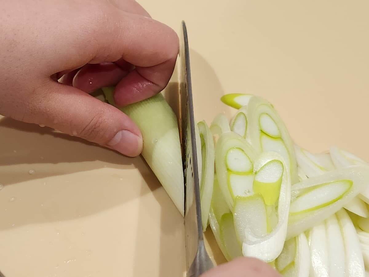 緑の部分も、白い部分と一緒に斜めに切りましょう。