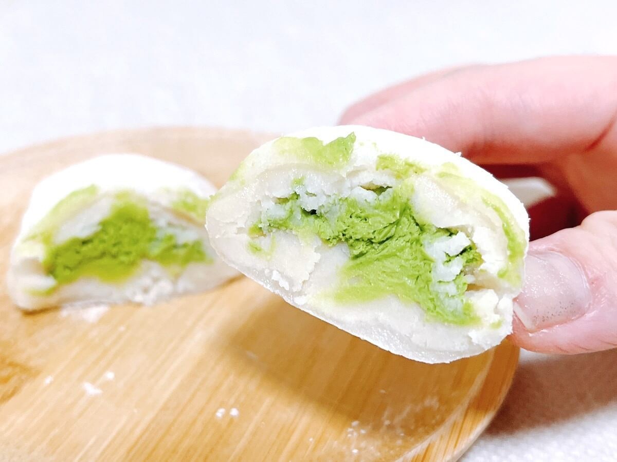 甘さ控えめのミルクあんと、抹茶感たっぷりのクリームが合う!本家・喜久福よりも、抹茶の風味は濃いような気がします。