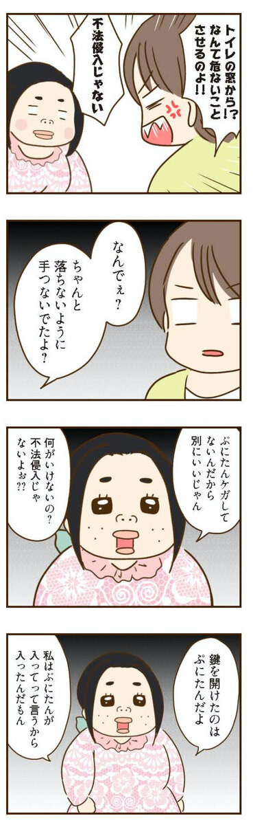 窓から落ちて大ケガでもしたら、取り返しのつかないことになっていたかもしれないのに「ケガしてないんだから別にいいじゃん」って。はぁぁぁ〜〜〜〜(怒)!?