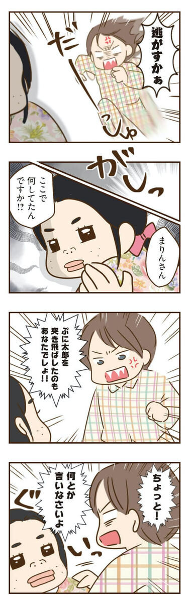 ぷに太郎を養子にすると決めたまりんは、まま代と夫彦が虐待をしているように見せかけたい模様。