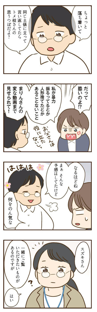児童相談所の職員さんとの話し合いに、トメ枝が参戦。まるでまま代が虐待しているかのように、あの手この手を使い陥れようとしてきます。