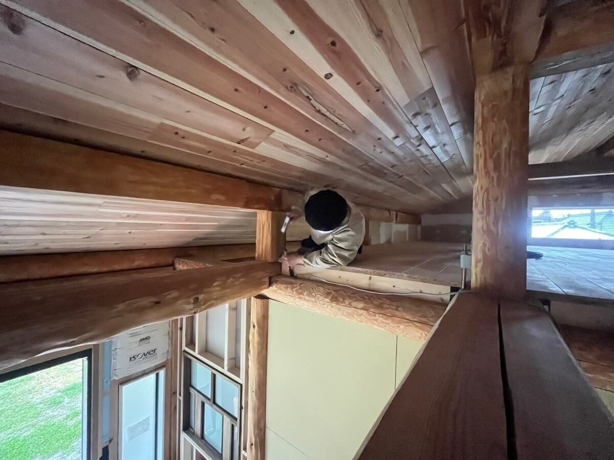 私が一番最初にノミをセルフビルドで使ったのは、家づくりの肝と言っても過言ではない、骨組みになる丸太の刻み作業!