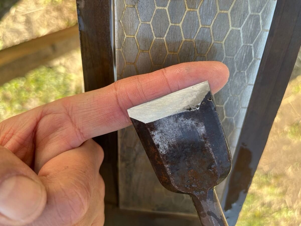 刃裏が平らじゃないと、真っ直ぐに切れていかないし、きれいな穴を掘ったりもできません。